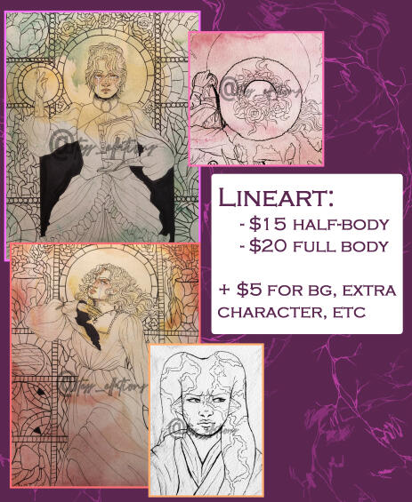 - I will share work-in-progress images at sketch, lineart, and color process stages, though if you would like an update you can always ask!